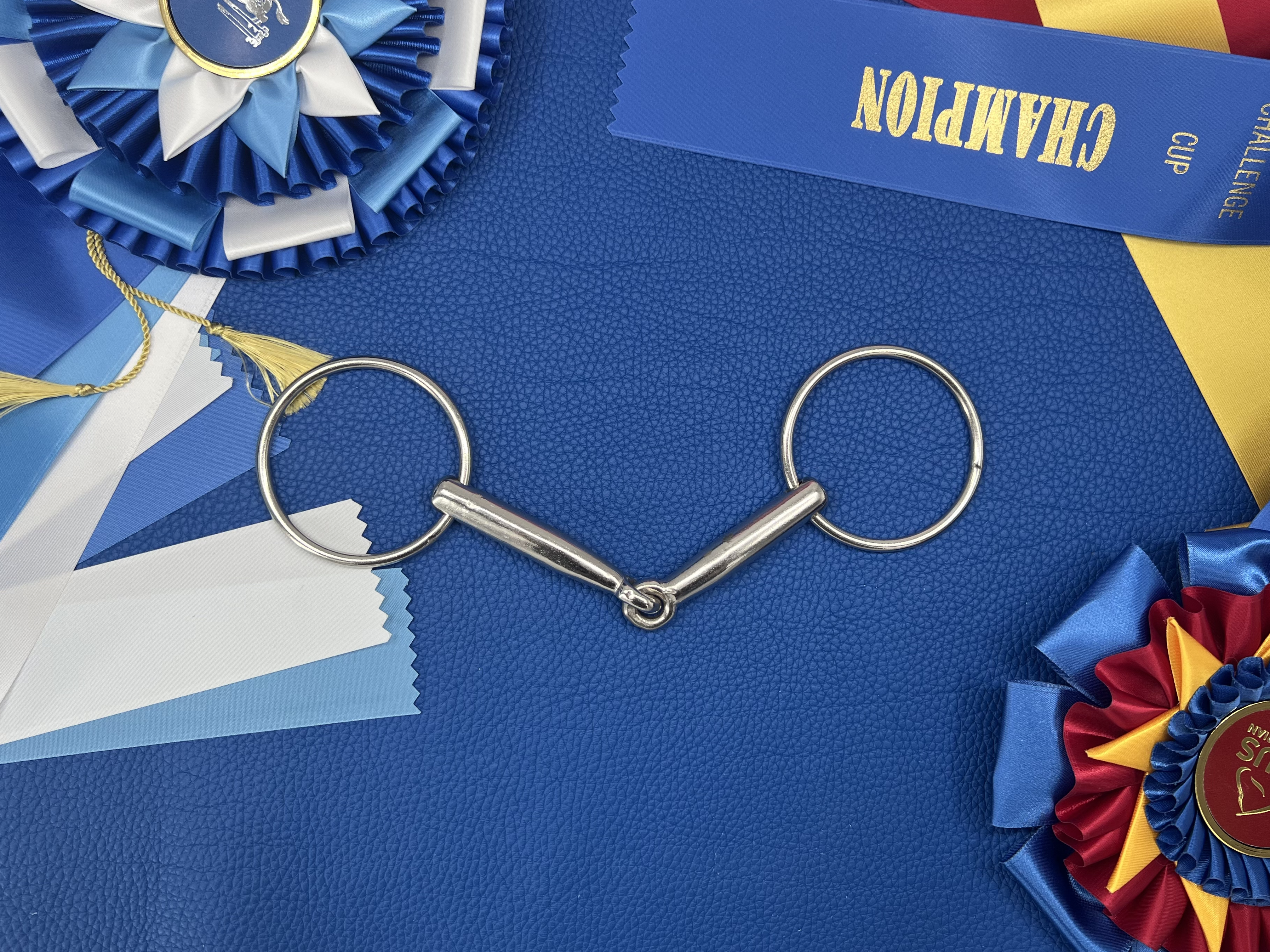 Copper alloy loose ring snaffle bit with 5” mouth piece.
