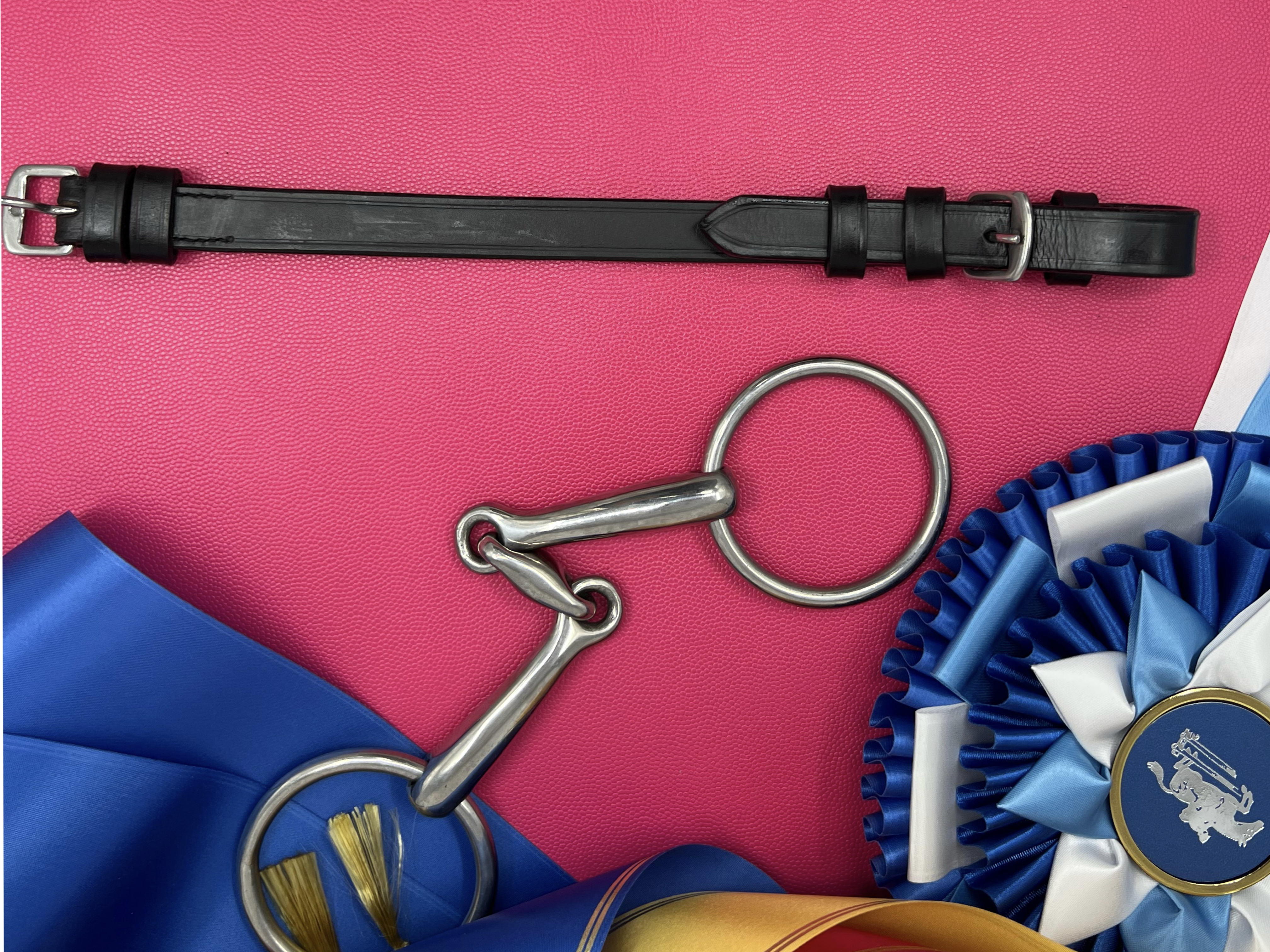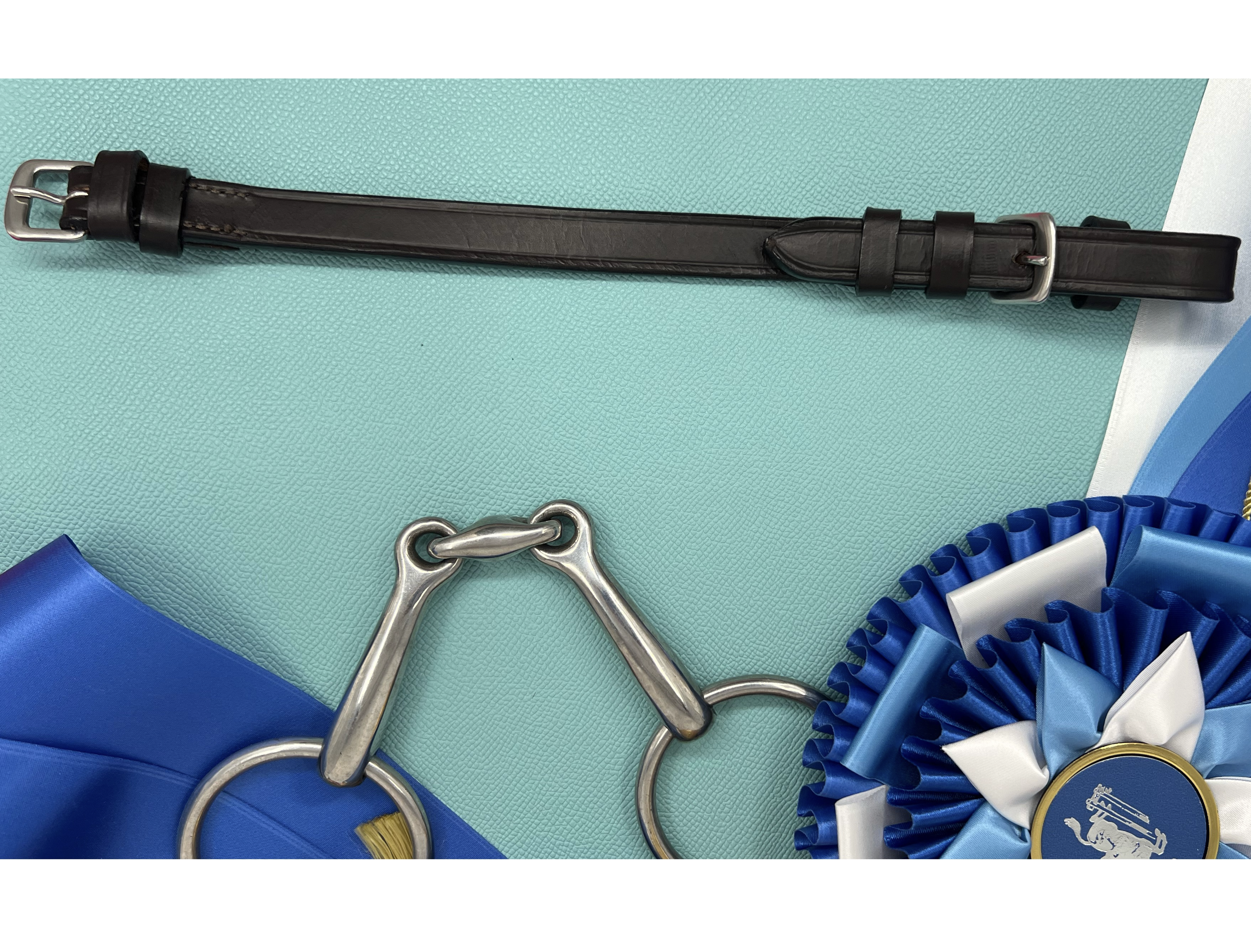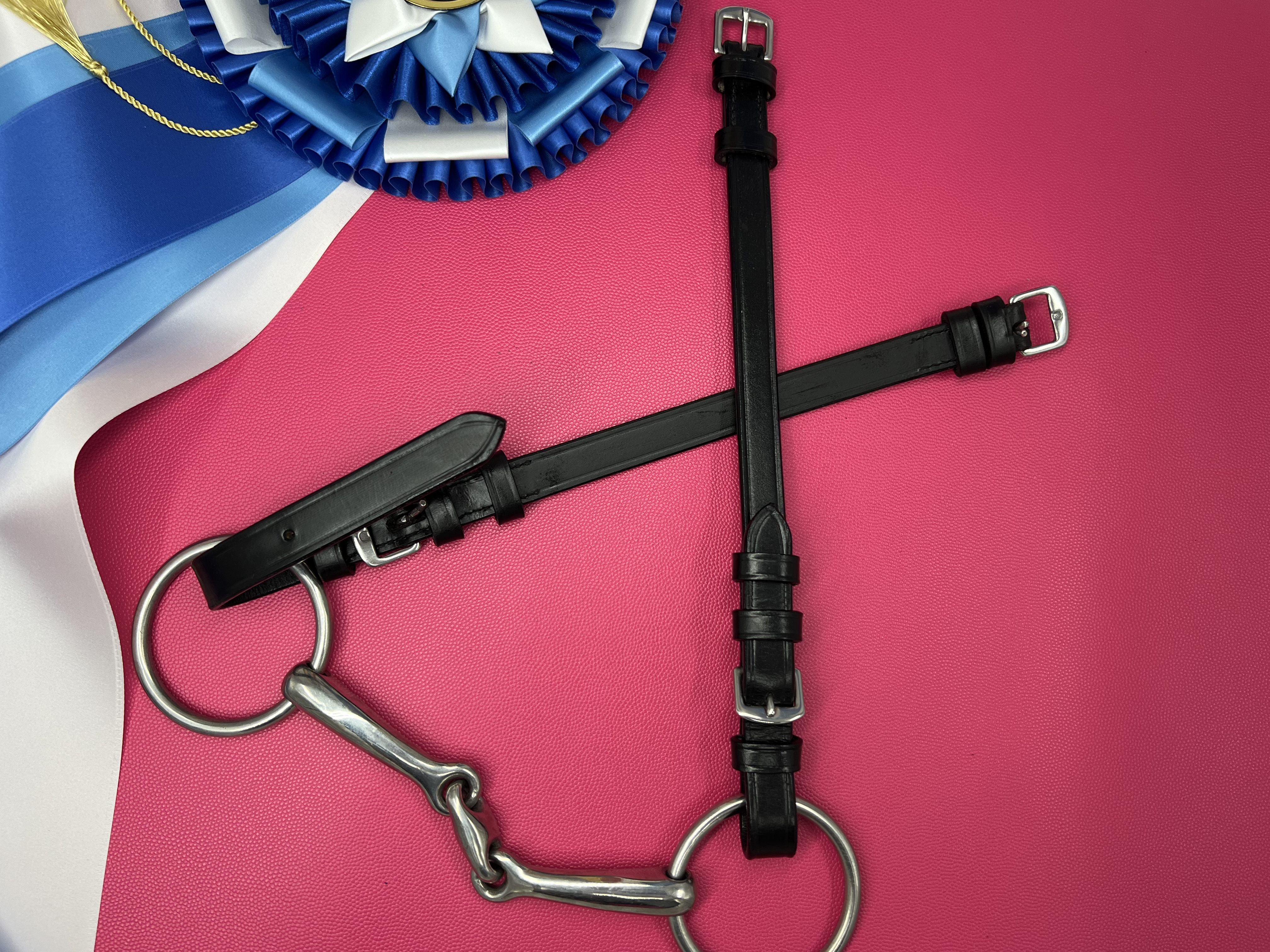 Premium quality Delfina brand cheek pieces for English bridles. Buckled bit hangers.