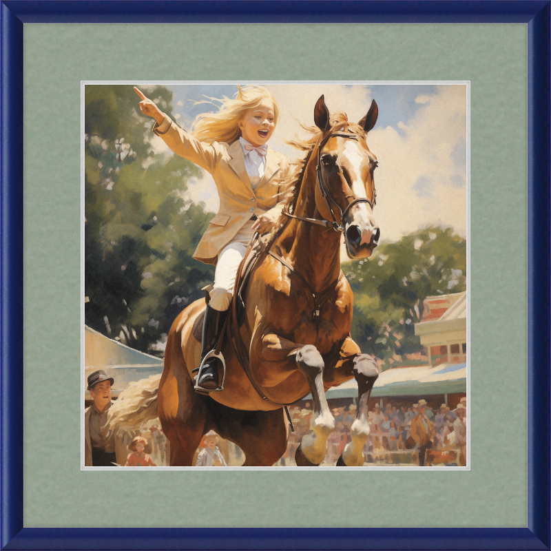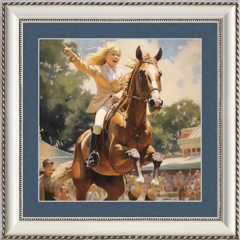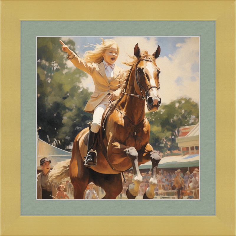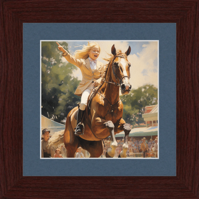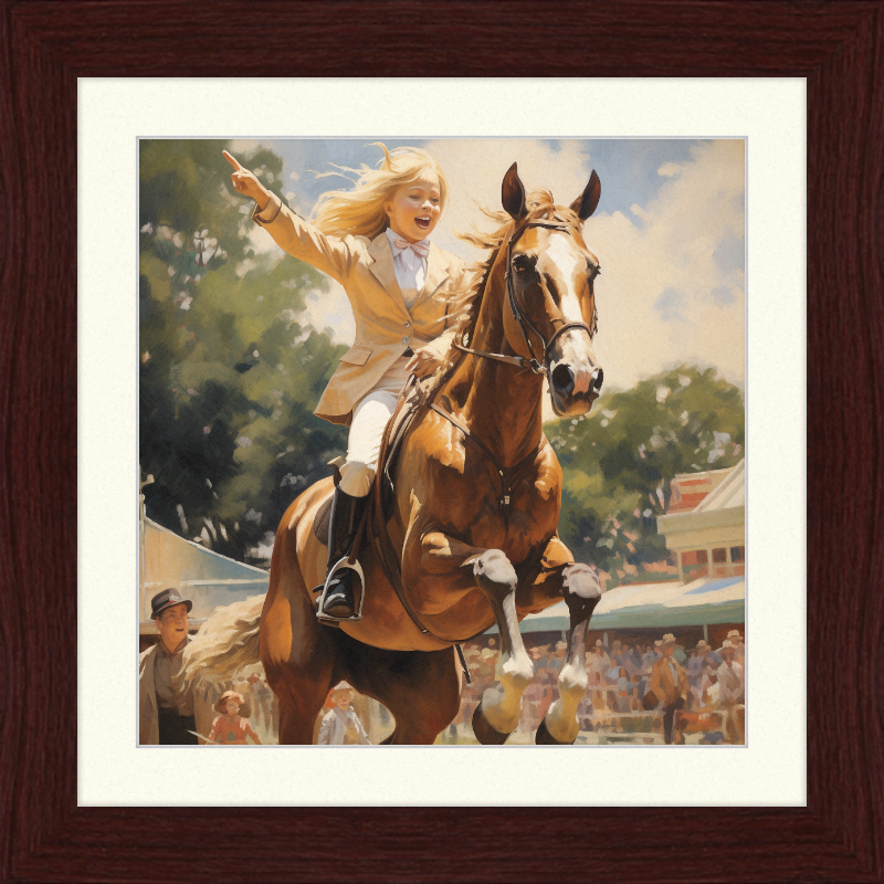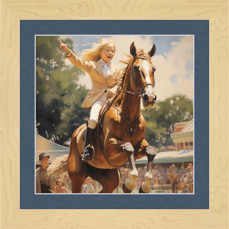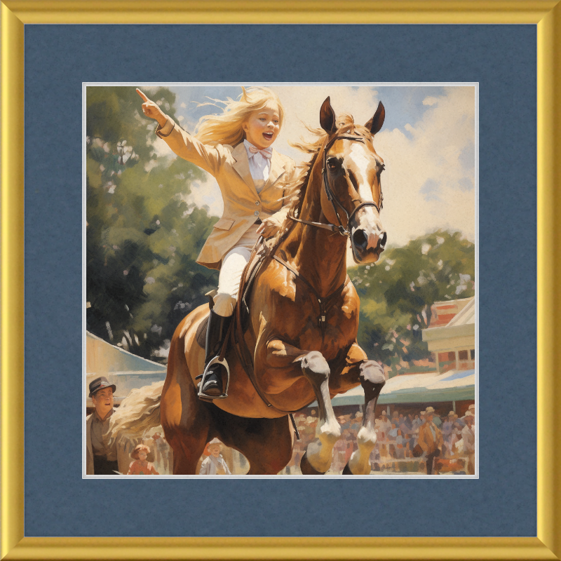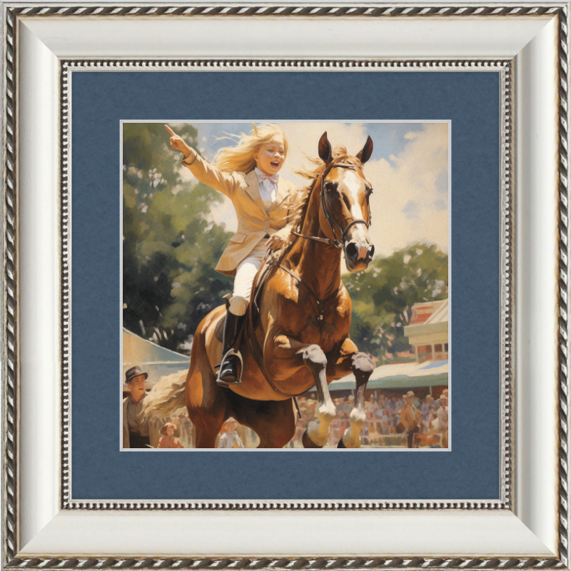 All our prints are printed on thick, acid-free art paper. Complimentary matting is optional. If purchasing a print with a mat, your piece will be professionally mounted before shipping. The whole thing is then mounted in your chosen frame, and enclosed inside a glare-free, UV-resistant piece of glass ready to be hung in your home or stable.