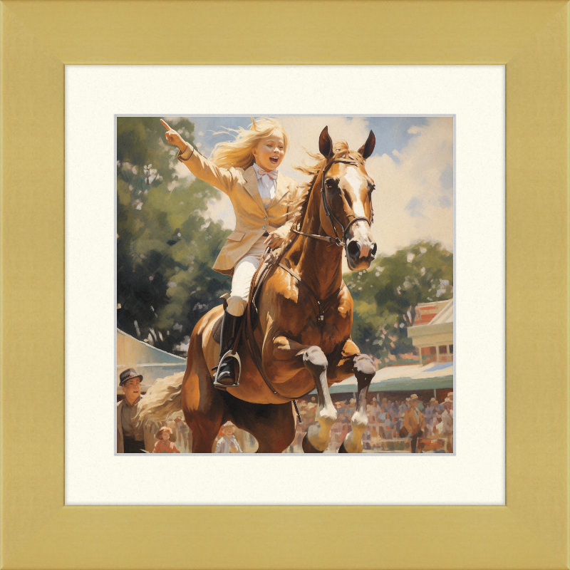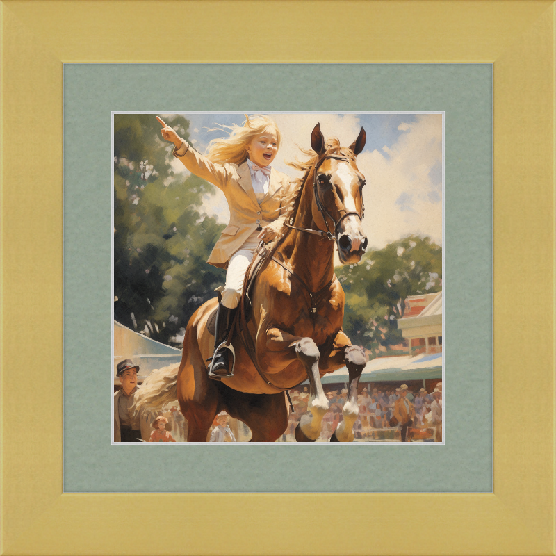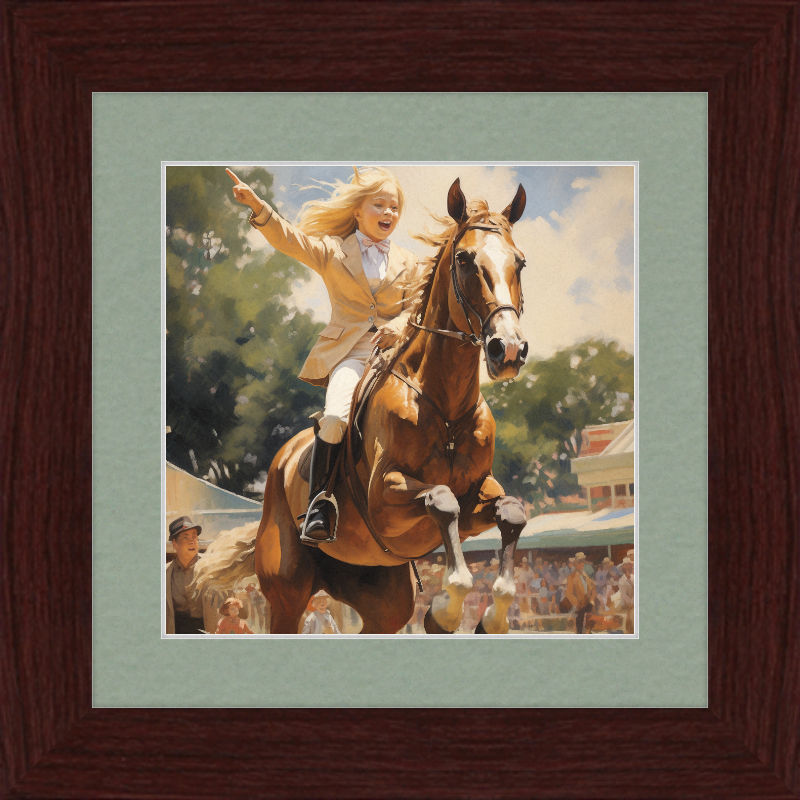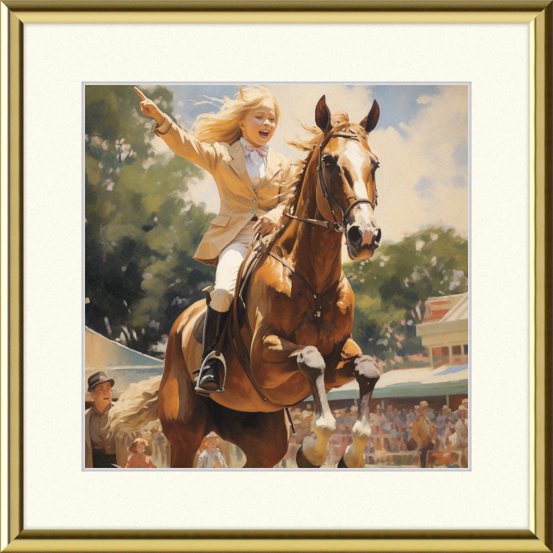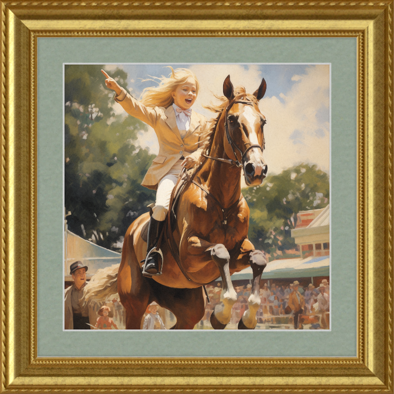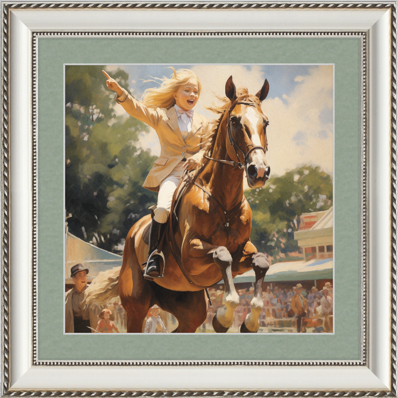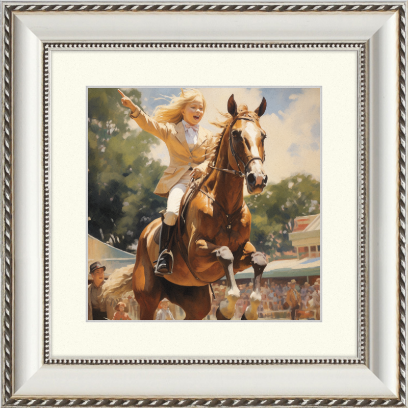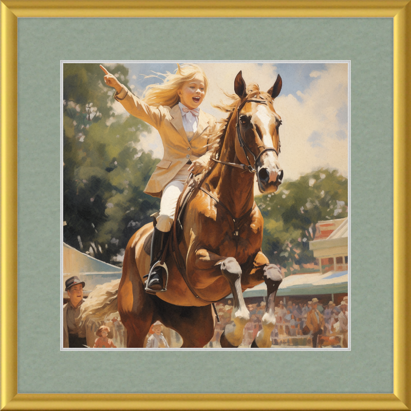All our prints are printed on thick, acid-free art paper. Complimentary matting is optional. If purchasing a print with a mat, your piece will be professionally mounted before shipping. The whole thing is then mounted in your chosen frame, and enclosed inside a glare-free, UV-resistant piece of glass ready to be hung in your home or stable.