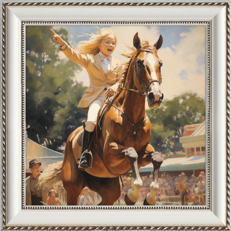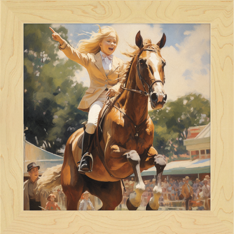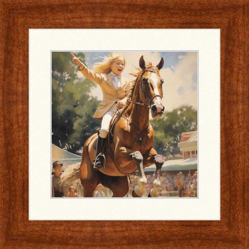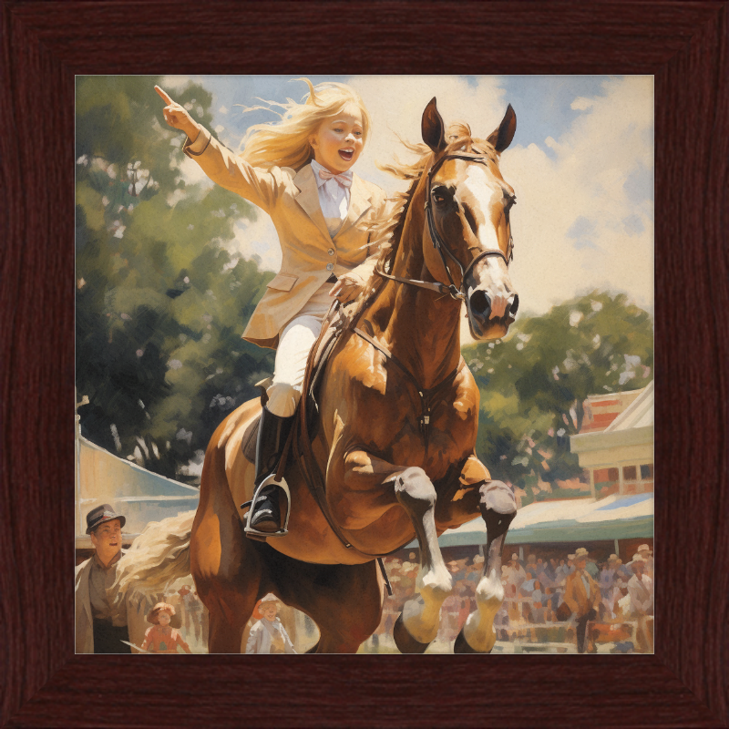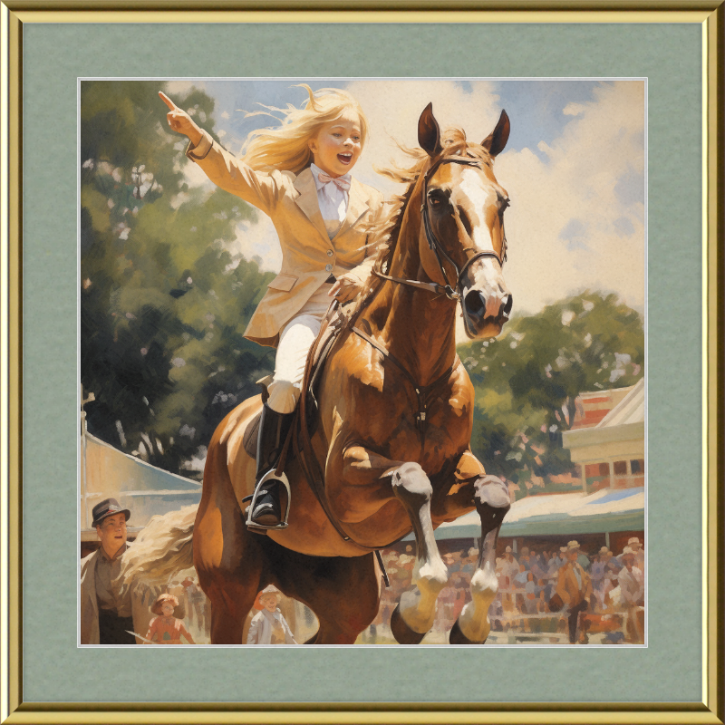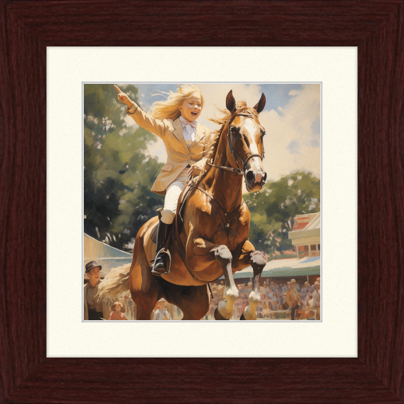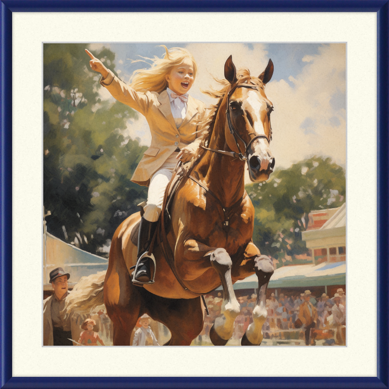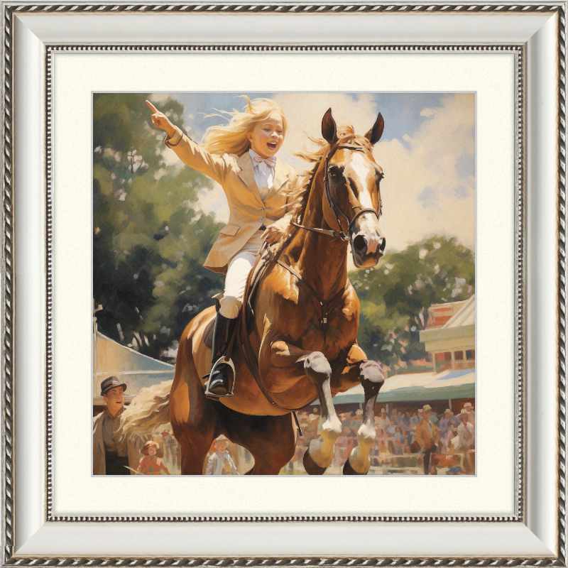 All our prints are printed on thick, acid-free art paper. Complimentary matting is optional. If purchasing a print with a mat, your piece will be professionally mounted before shipping. The whole thing is then mounted in your chosen frame, and enclosed inside a glare-free, UV-resistant piece of glass ready to be hung in your home or stable.