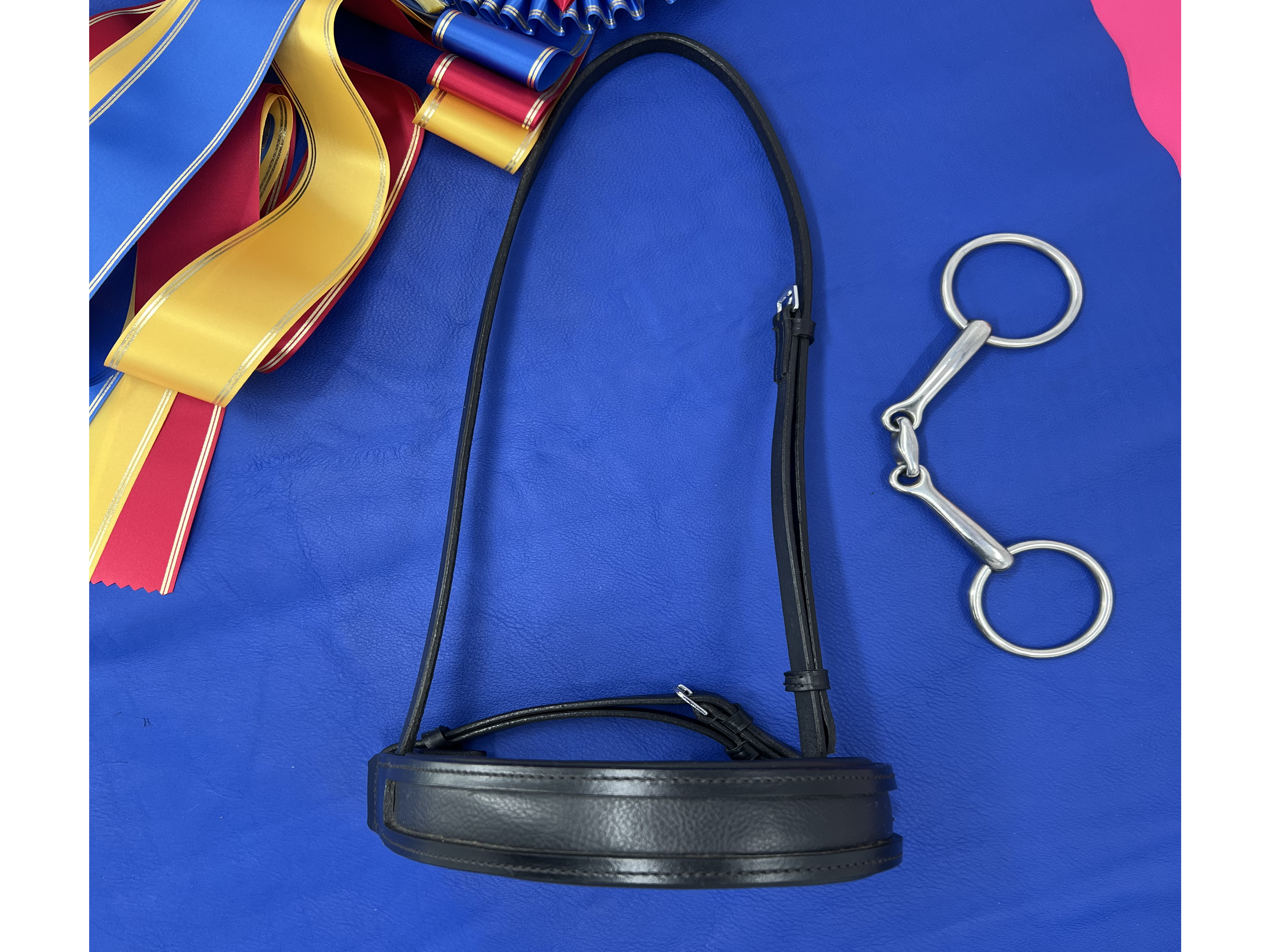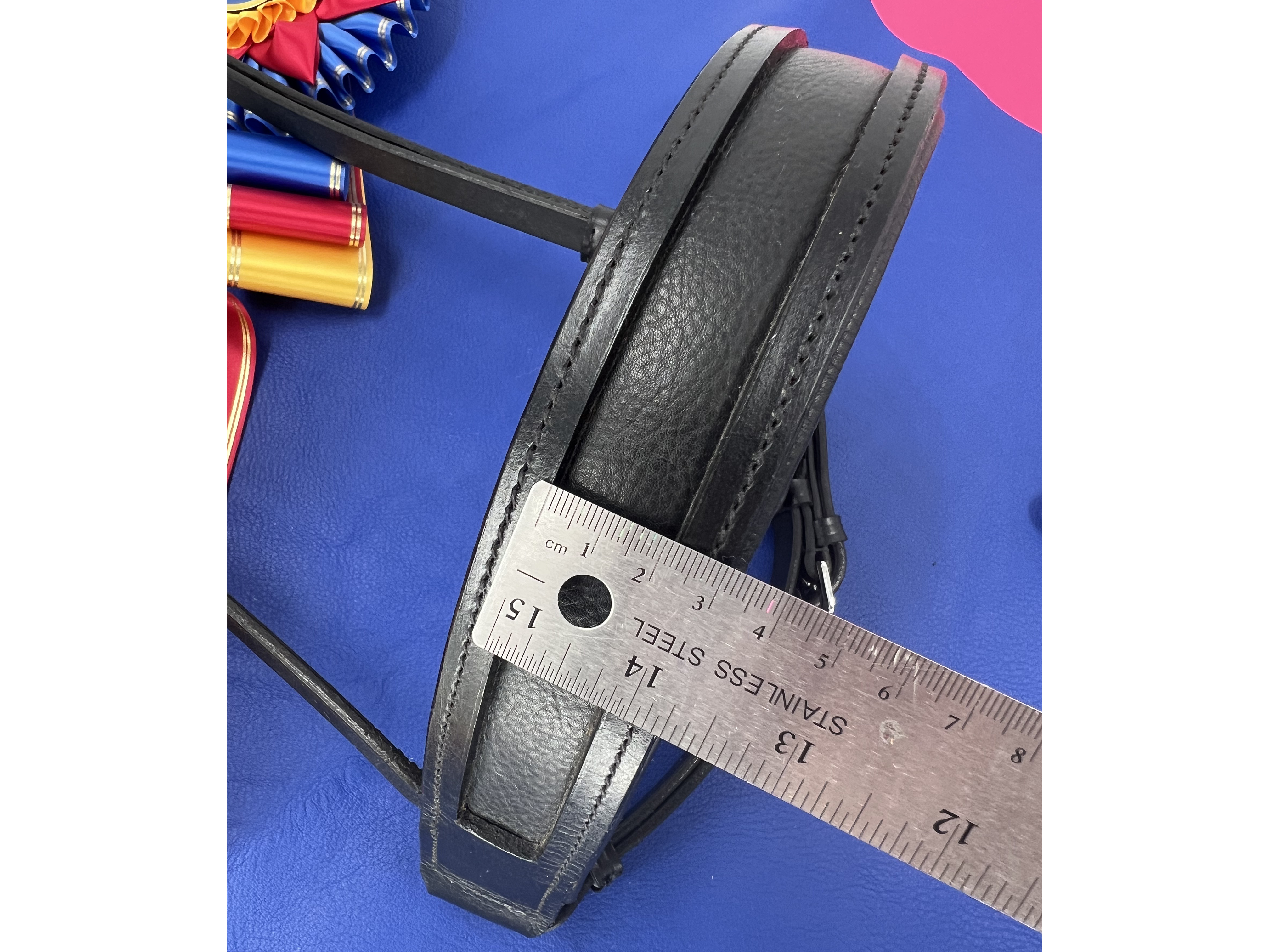 Soft, black, padded, empty channel noseband for beading. Crank style French (no Flash loop or strap) cavesson.