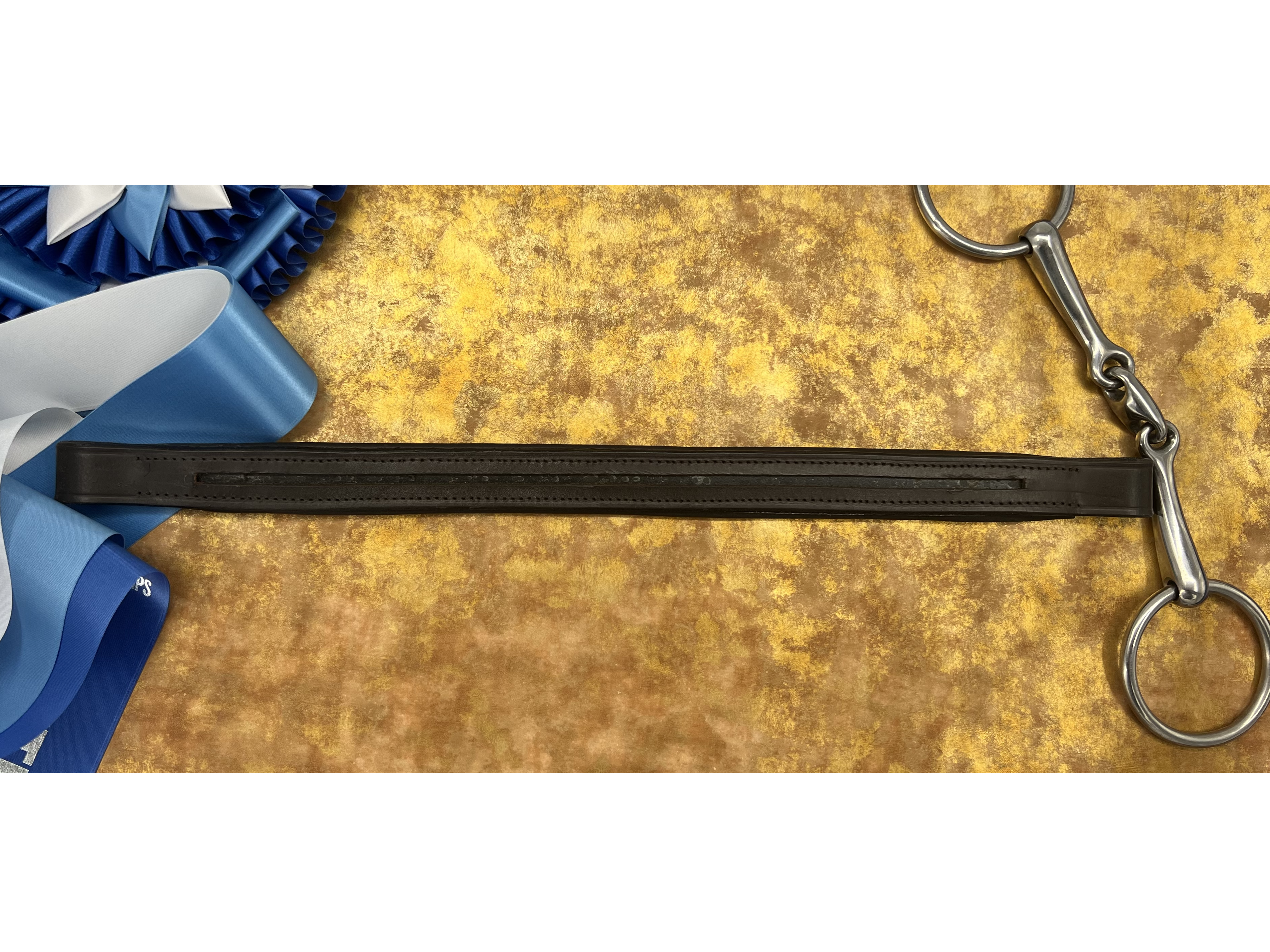 Delfina Saddlery's collection of extra-wide, browbands - including empty channel options! Our browbands are generously padded, hand stitched, and made to Delfina's high, exacting standards. They are easy to pass needles through for beading, and feature a plastic channel backing that is glue-friendly.