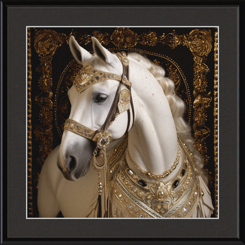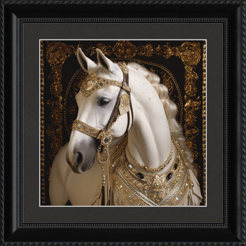 All our prints are printed on thick, acid-free art paper. Complimentary matting is optional. If purchasing a print with a mat, your piece will be professionally mounted before shipping. The whole thing is then mounted in your chosen frame, and enclosed inside a glare-free, UV-resistant piece of glass ready to be hung in your home or stable.