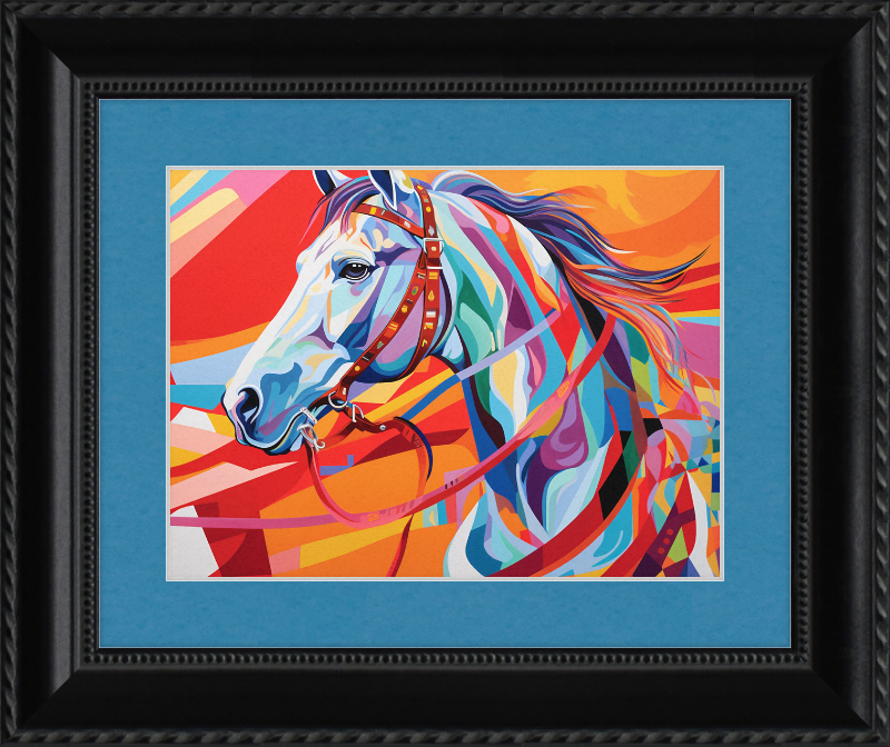 All our prints are printed on thick, acid-free art paper. Complimentary matting is optional. If purchasing a print with a mat, your piece will be professionally mounted before shipping. The whole thing is then mounted in your chosen frame, and enclosed inside a glare-free, UV-resistant piece of glass ready to be hung in your home or stable.
