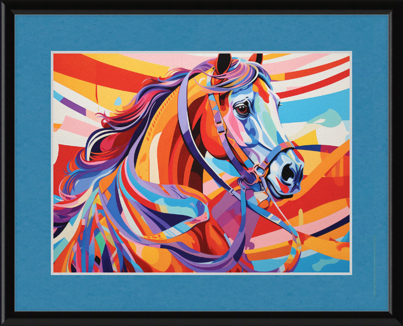All our prints are printed on thick, acid-free art paper. Complimentary matting is optional. If purchasing a print with a mat, your piece will be professionally mounted before shipping. The whole thing is then mounted in your chosen frame, and enclosed inside a glare-free, UV-resistant piece of glass ready to be hung in your home or stable.