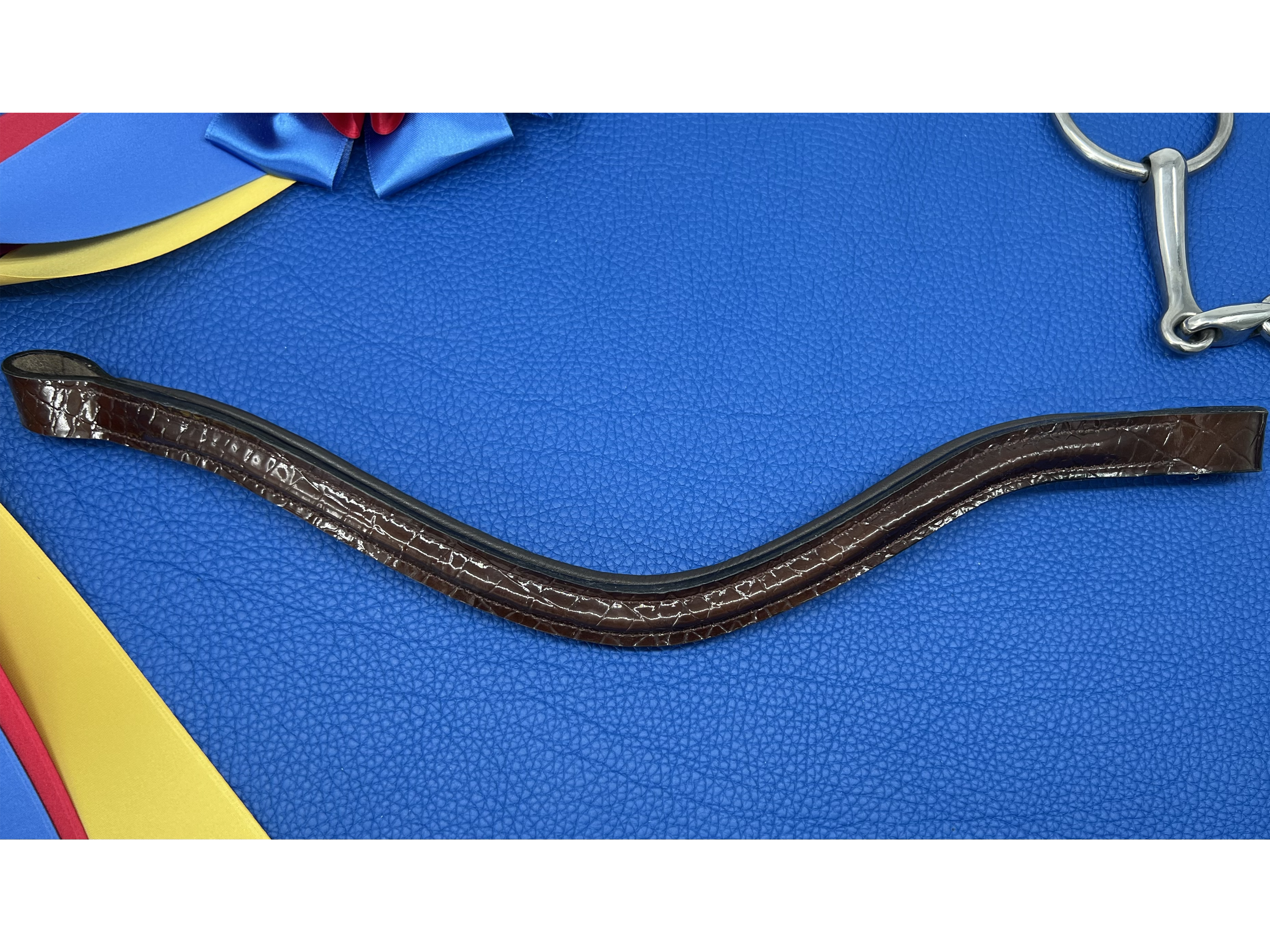 Delfina’s exclusive, limited edition, Lamplight browbands in beautiful brown croc print patent leather.