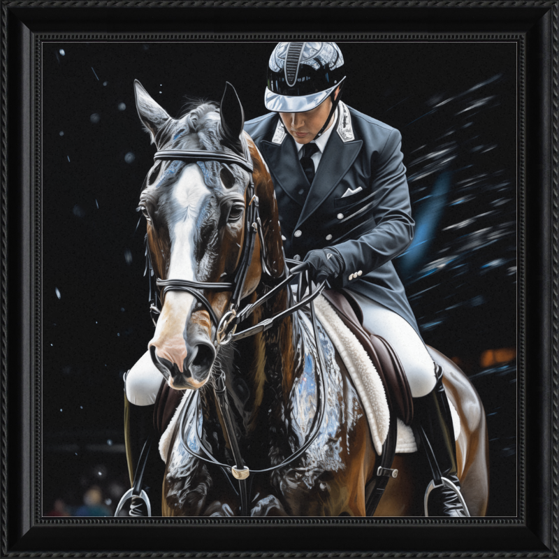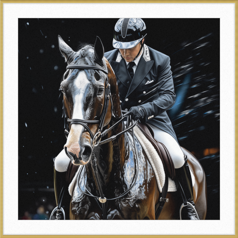 All our prints are printed on thick, acid-free art paper. Complimentary matting is optional. If purchasing a print with a mat, your piece will be professionally mounted before shipping. The whole thing is then mounted in your chosen frame, and enclosed inside a glare-free, UV-resistant piece of glass ready to be hung in your home or stable.